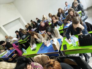 27 Oct 2025 Реализиран прв циклус на обуки по проектот „Сугестопедија“ by Mariyana Tanevska | posted in: News, Sugestopedija | 0 На 21 и 22 октомври 2025 година, во Скопје, во просториите на Здружението „Еду Центар“ се одржаа првите две обуки од проектот „ Сугестопедија“ – учење по методологијата развиена од проф. д-р Георги Лозанов.